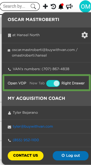 - Open VDP toggle added inside the User Menu in order to allow user to select the behavior of the platform when a VDP is open from a table view